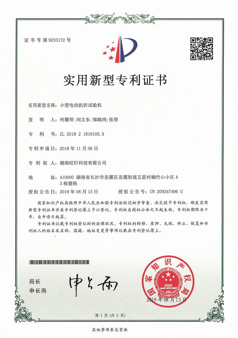 實用新型專利-小型電動抗折