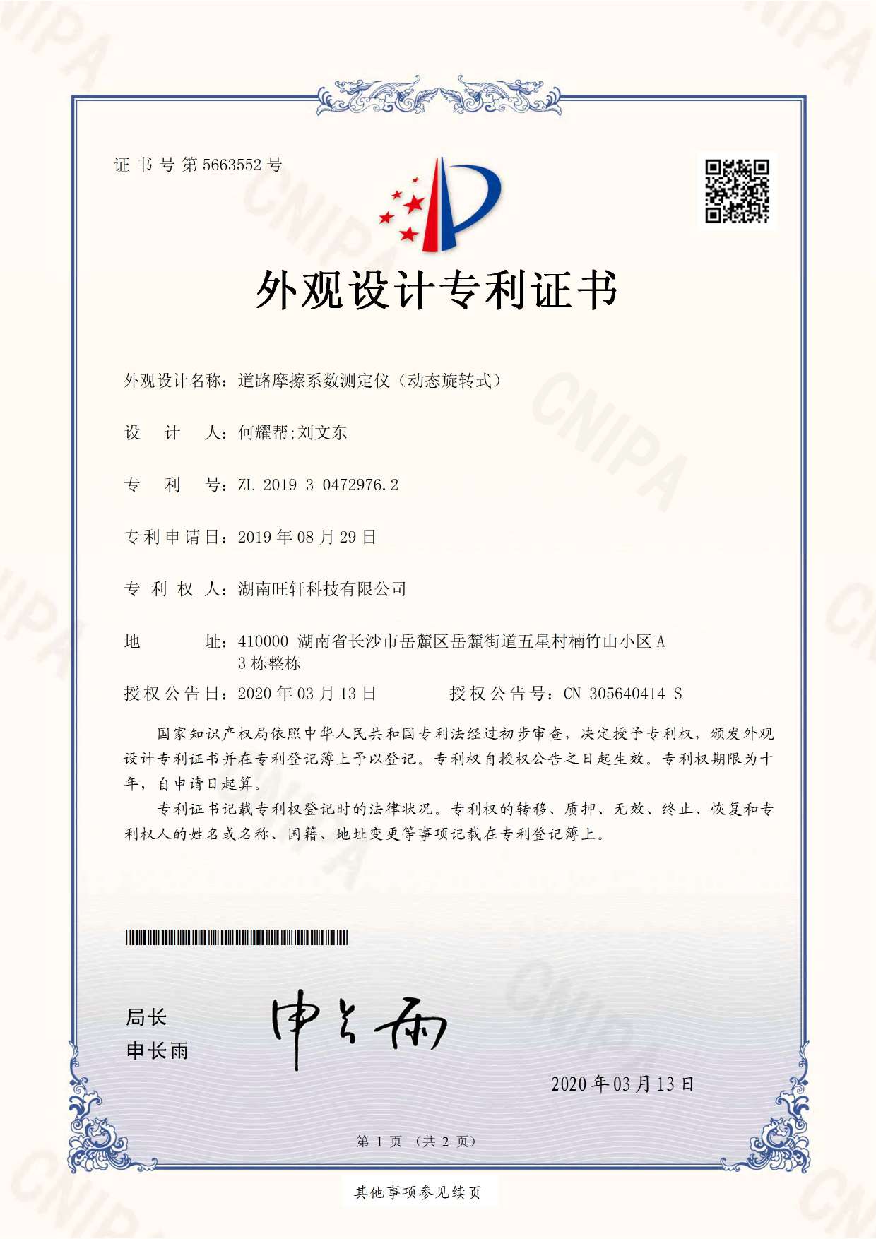 外觀專利-道路附著系數測定儀